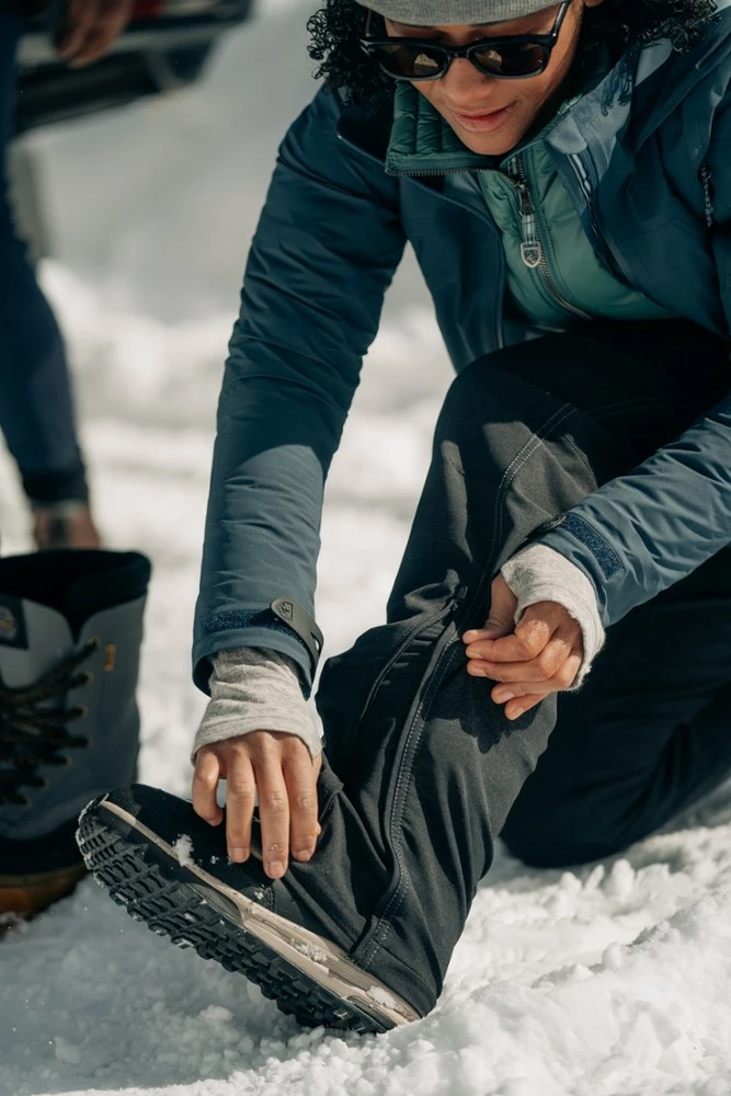 - Zippered bottom hem gusset to fit over boots; boot hooks help seal out the cold