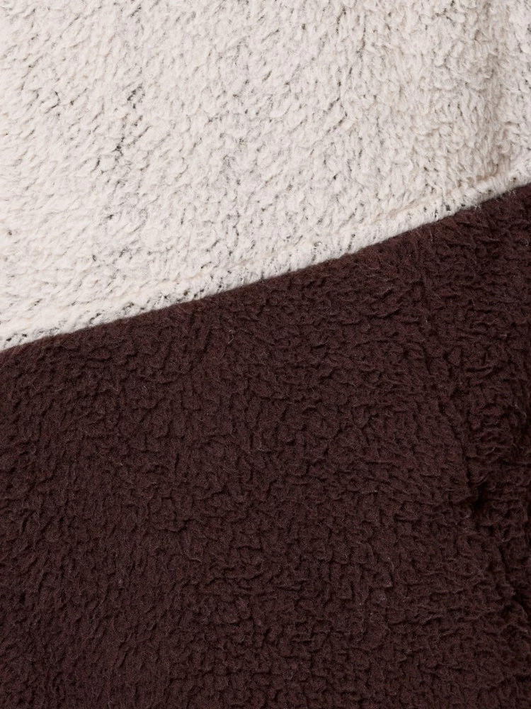 - High-pile stretch fleece and soft-shell shoulders combine for a fun look and good performance in cool weather