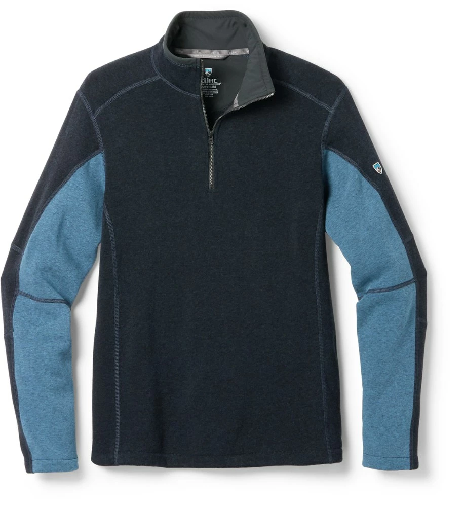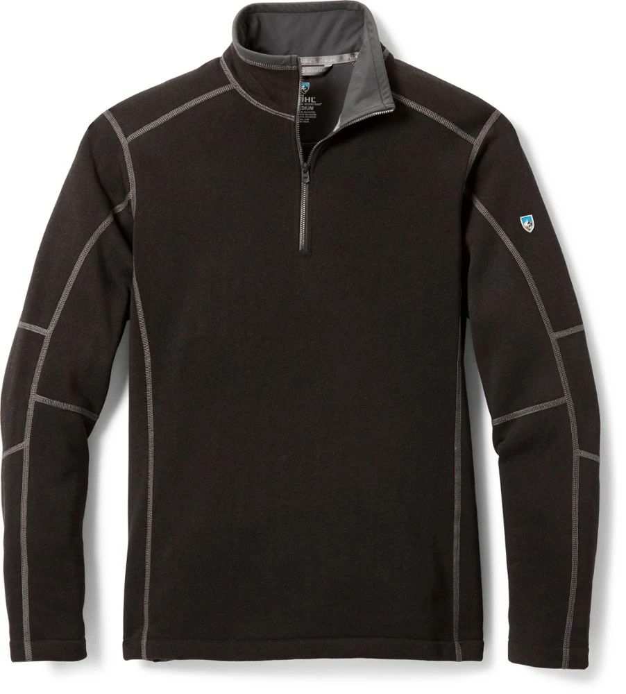 Hit the trail or head into town on a cold day in comfort when you wear the soft and warm KUHL Revel Quarter-Zip fleece sweater for men.