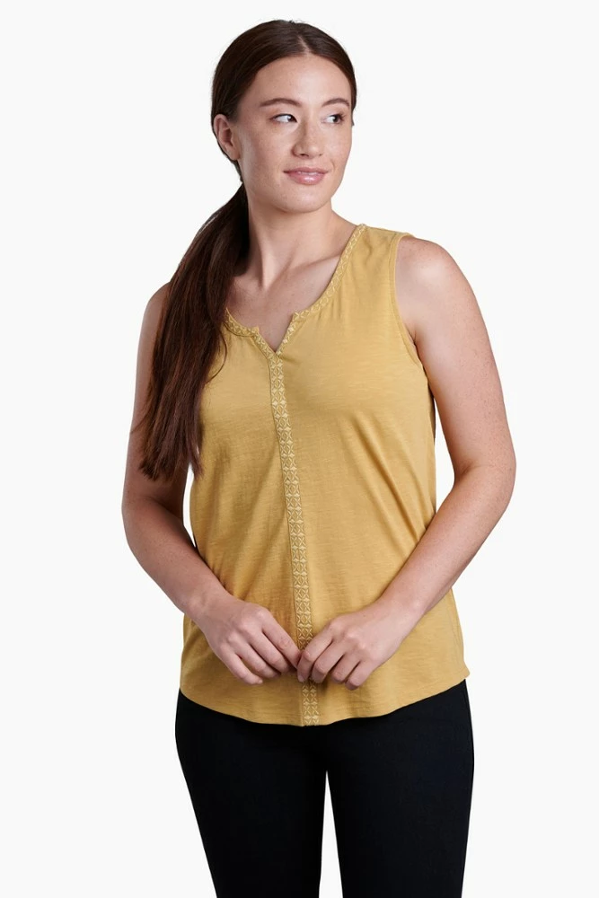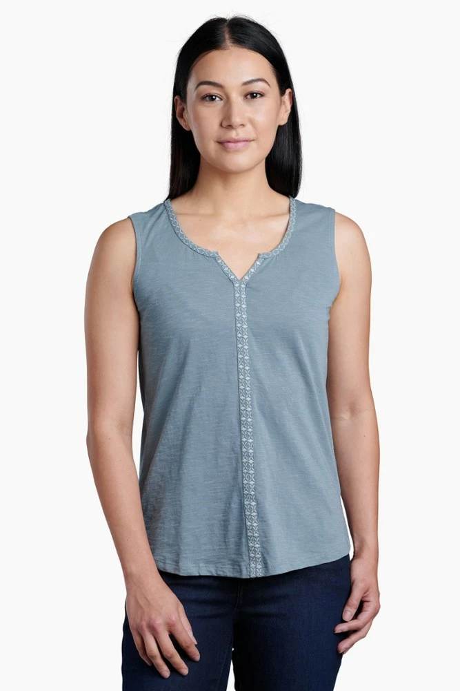 Crafted of supersoft slub Wildfibre™ 100% organically grown cotton, the women’s KUHL Shay tank top has distinctive embroidery and a crossover pleat, adding flair to this must-have summer tank.
