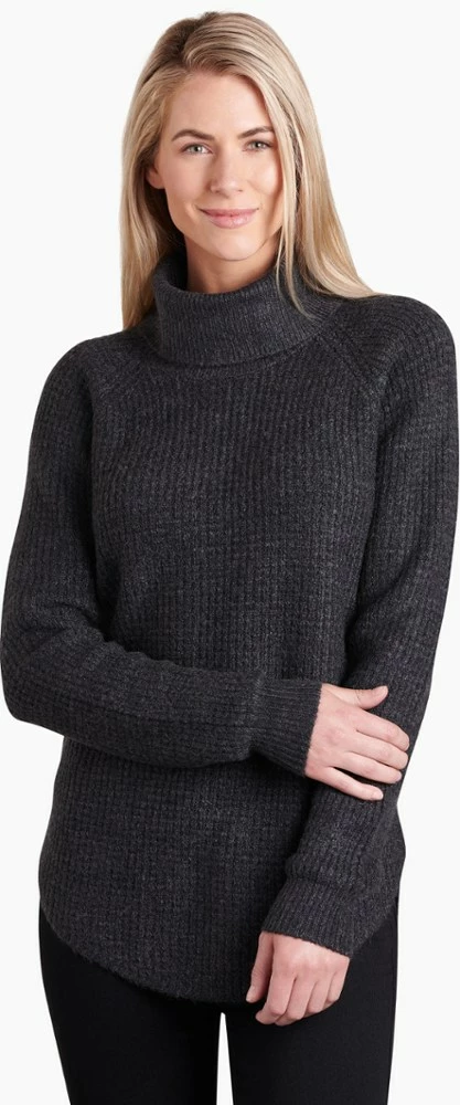 Refresh your cool weather staples with the women’s KUHL Sienna sweater, a chunky knit pullover designed with a ribbed cowl neck and curved hem to keep you covered, comfortable and warm.