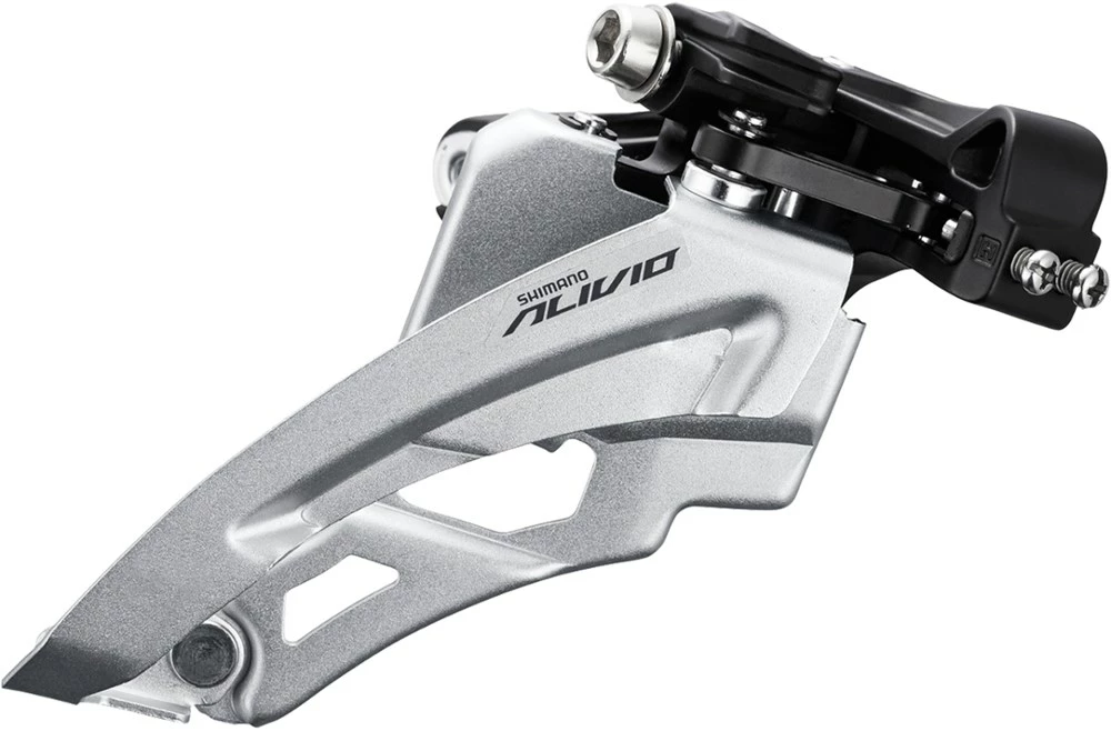 Get smooth, quiet shifting across wide-range triple front chainrings with the Shimano Alivio M3100 front derailleur. Side Swing technology increases clearance for large wheels and short chainstays.