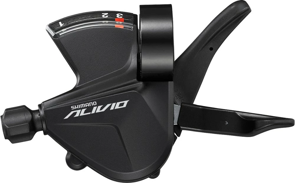 Providing light, responsive shifting for 3 x 9-speed mountain bikes, the Shimano Alivio M3100 Rapidfire Plus shifter lets you easily check your gearing with optical gear display.
