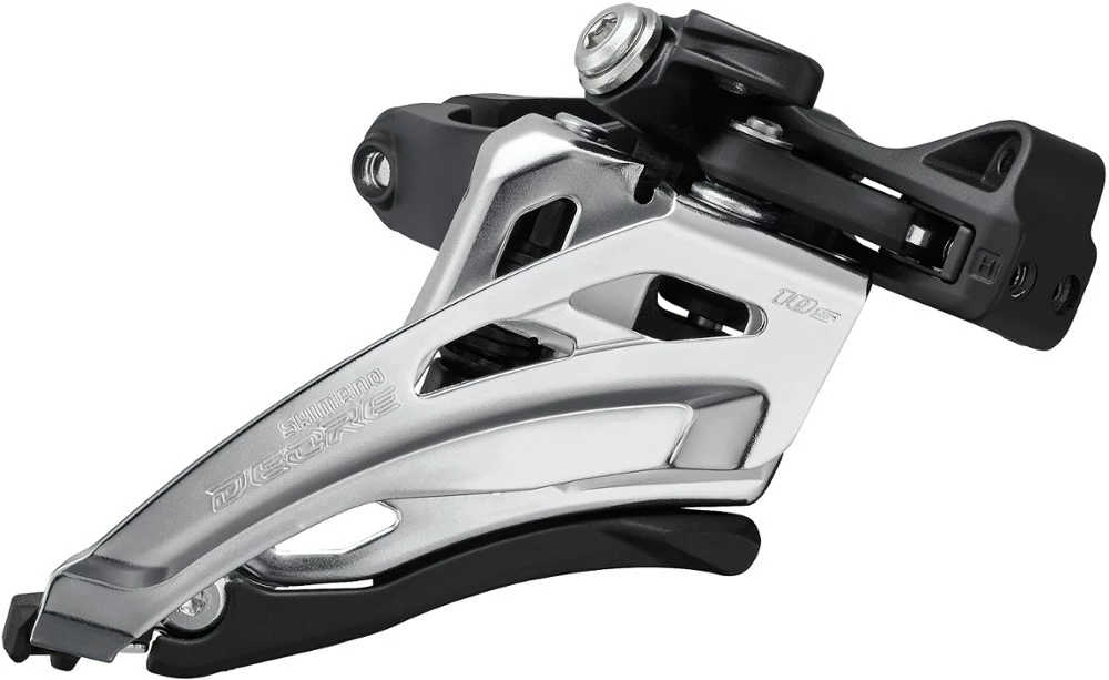 Smooth and quiet on the trail, the Shimano Deore M4100 2 x 10-speed front derailleur uses Side Swing technology to enhance cable routing efficiency and provide lighter action and smoother operation.