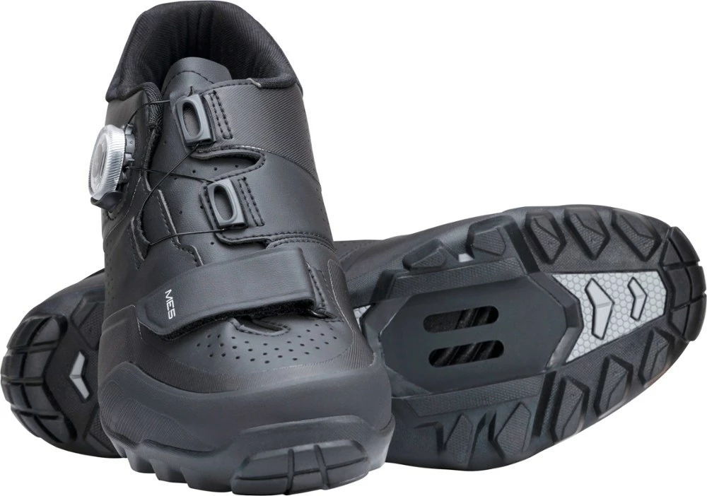 Built for trail performance and off-the-bike traction, the men’s Shimano ME5 mountain bike shoes feature offset tongues and Boa® closures for improved comfort and stable, efficient pedaling.