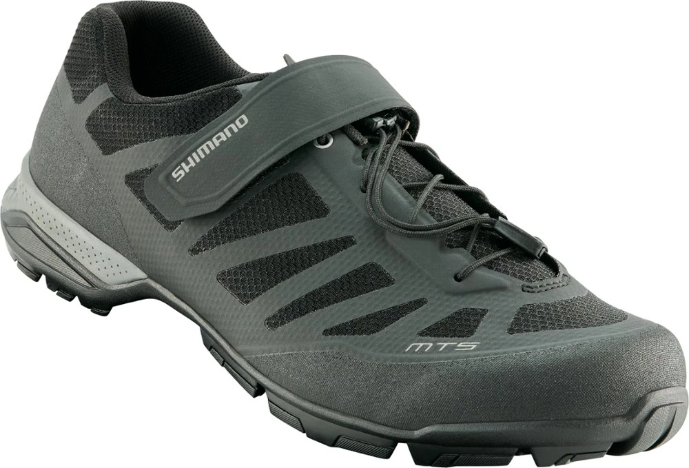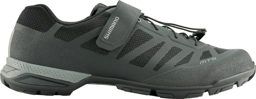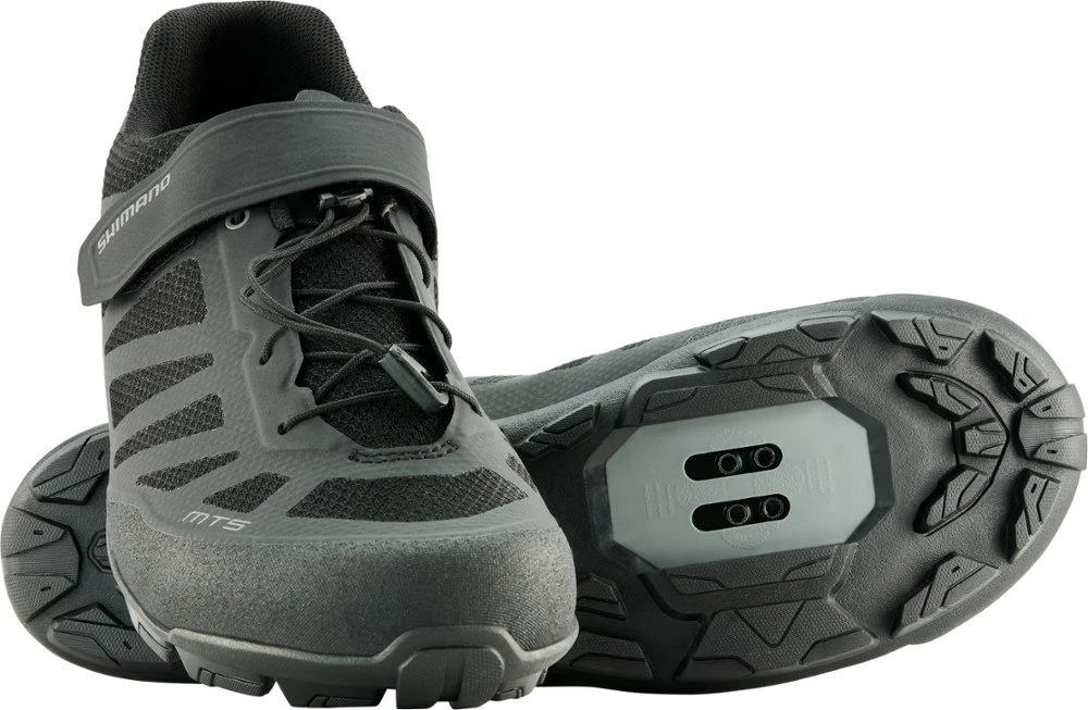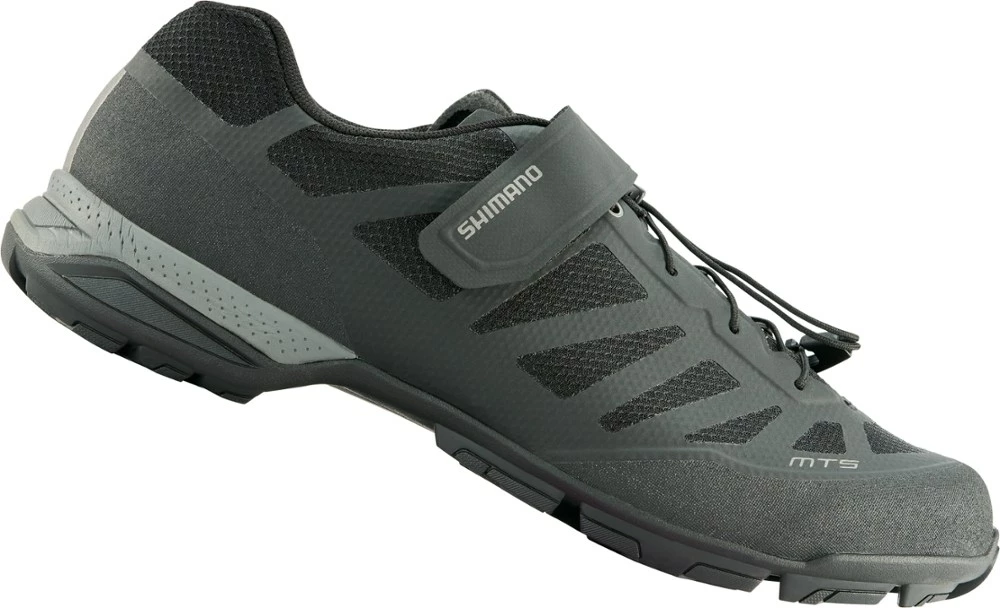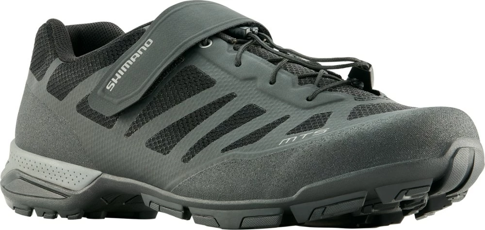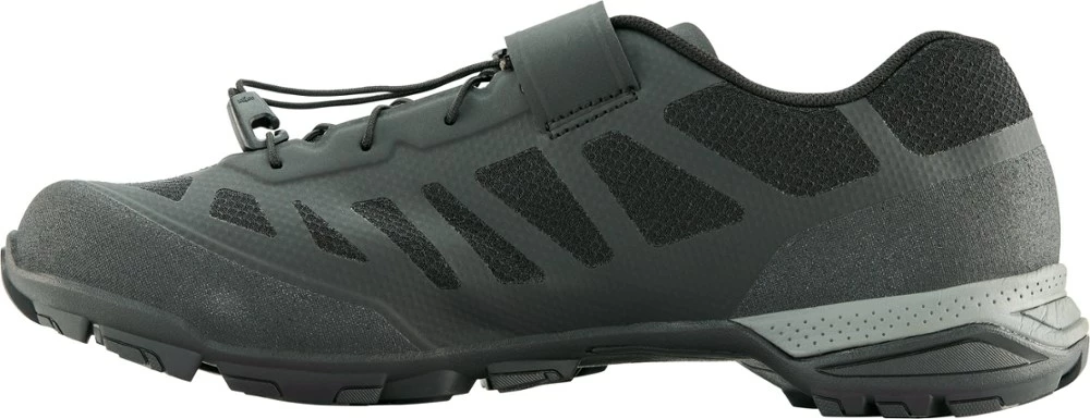 Stay surefooted on the pedals and the dirt in the men’s Shimano MT5 mountain bike shoes. They breathe easy, adjust quickly and offer the walkability of light hiking shoes when you’re off your bike.