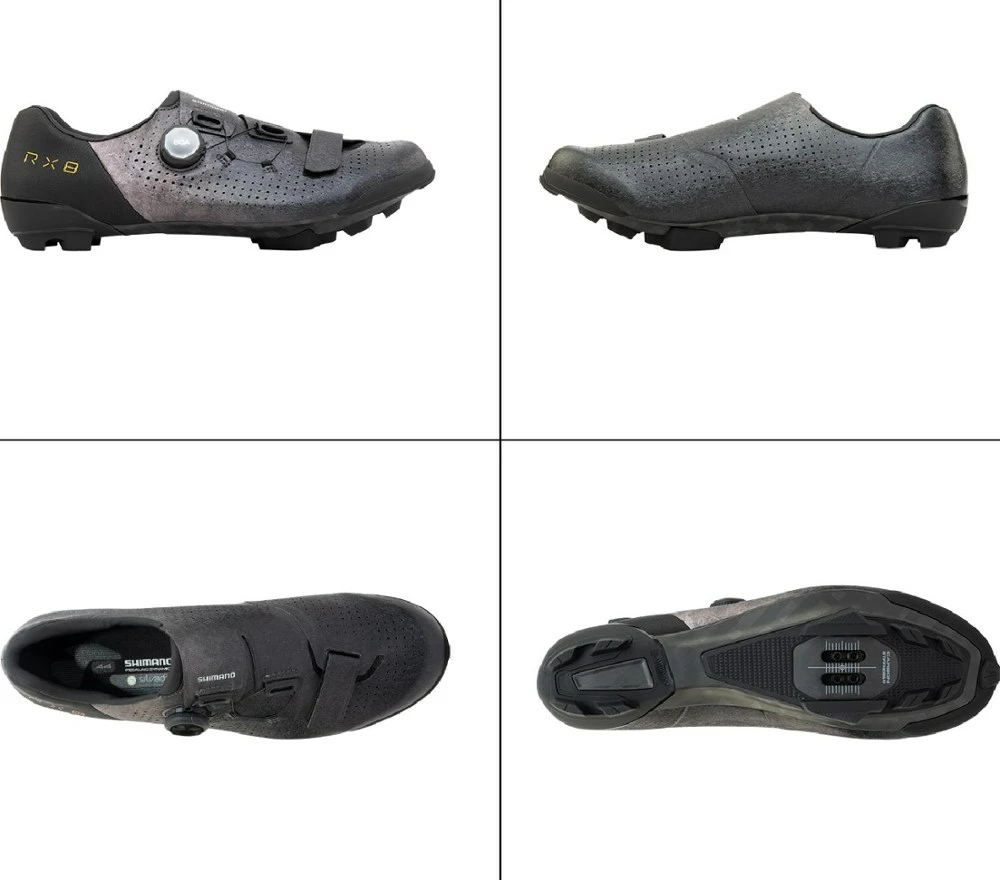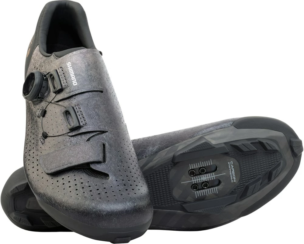 Balancing pedaling performance with off-the-bike capability, the men’s Shimano RX8 gravel bike shoes are light, stiff and walkable—ideal for gravel races and any rides that go beyond the pavement.